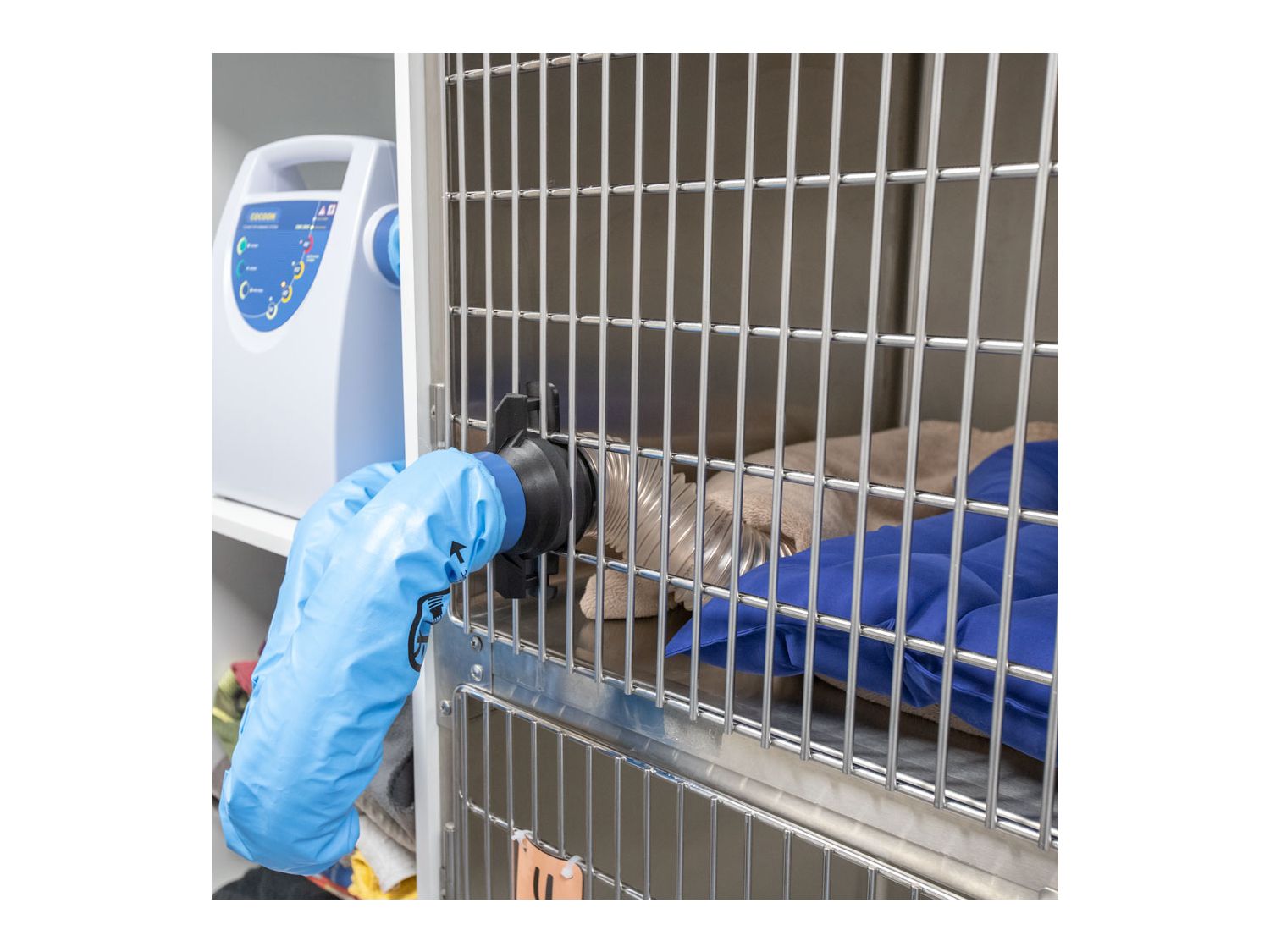 The Burtons cage adaptor allows easy in-cage use of your warming system. Unlike other forced air warming connectors, the Burtons adapter includes extra tubing, meaning the cage door can be opened and closed without having to disconnect the warmer or disturb the patient.