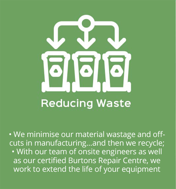 Throughout Burtons, we are doing our bit to develop & promote sustainable working practices. From our fleet to our facilities, to furthering the life of your equipment. We are dedicated to encouraging green habits in our staff, suppliers & partners to protect the worlds eco systems.
